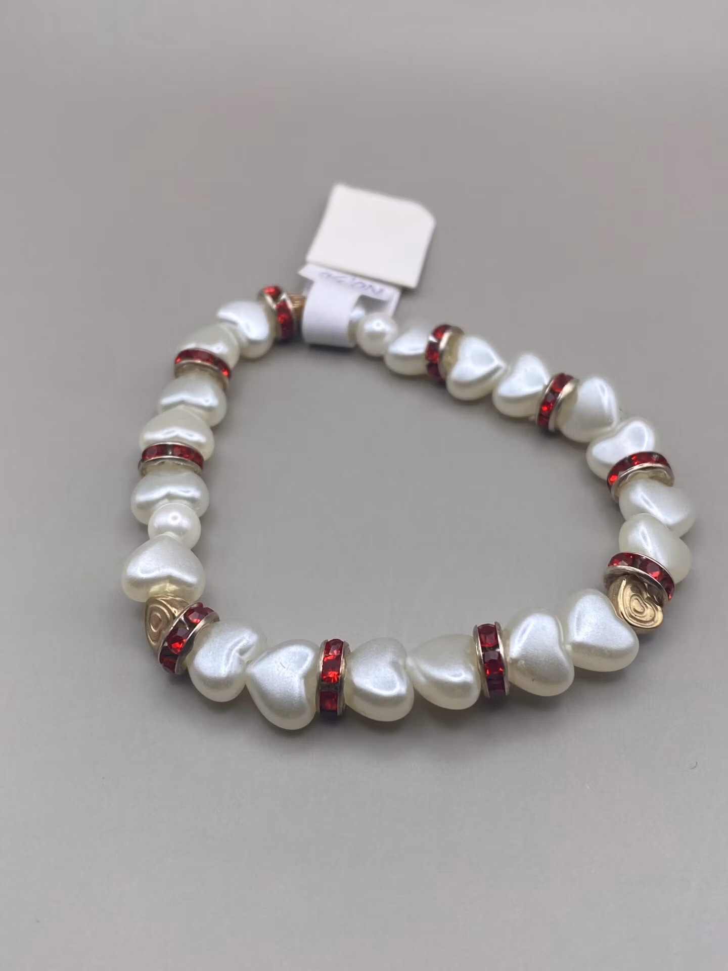 Vita hjärtan varvat med runda vita pärlor, guldfärgade hjärtan och röda strassdetaljerVisas produkten "Tillfälligt slut" efter att du lagt den i din kundkorg, b