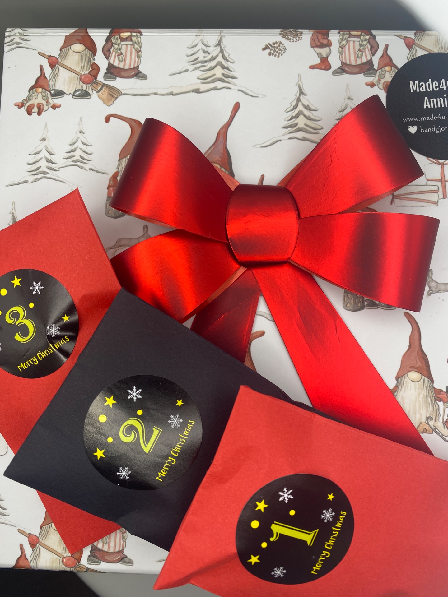 Varje smycke är inslaget i ett numrerat paket (1–5) och levereras mysig julpåse.