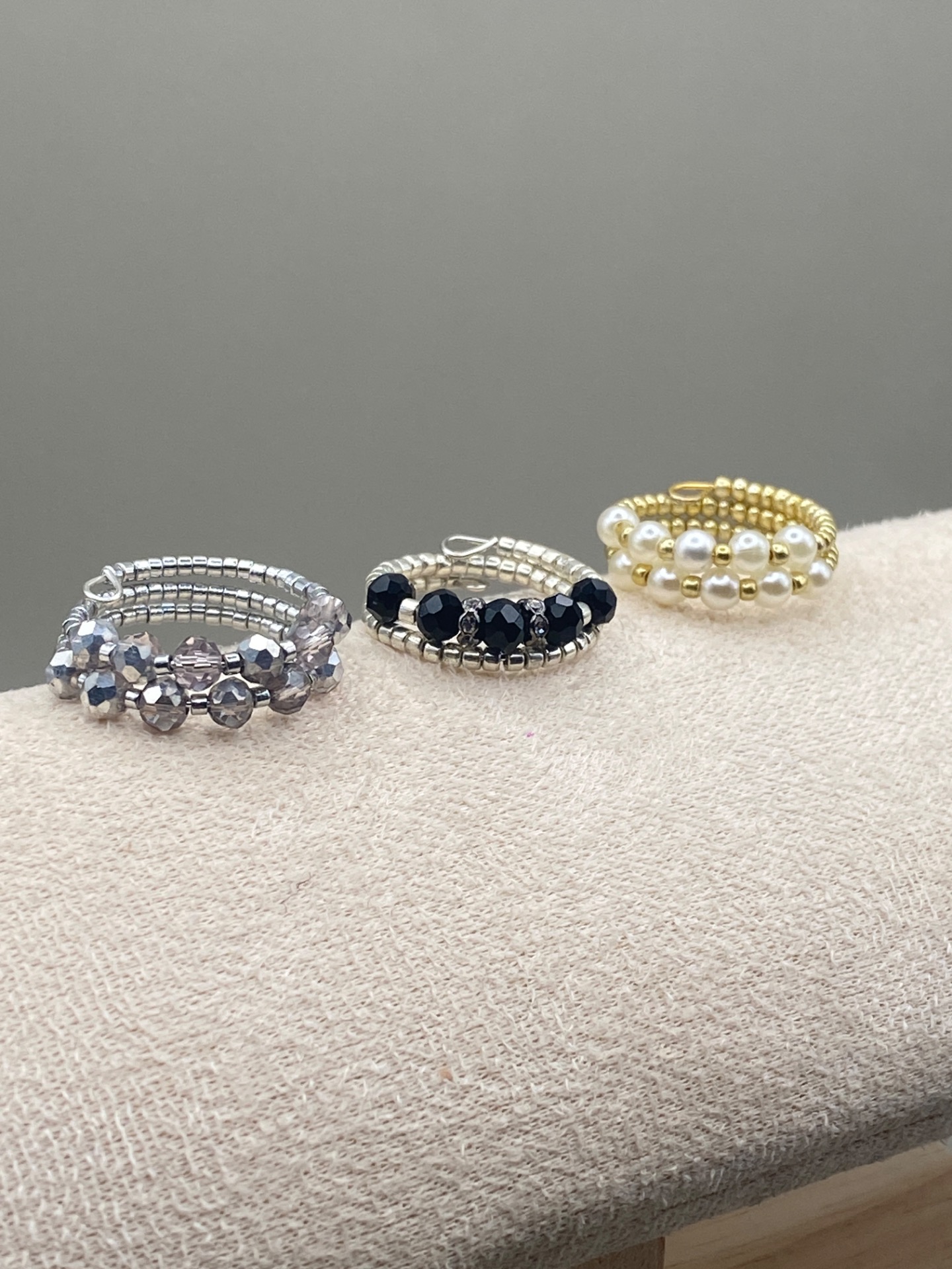 Ringen är gjord av flexibel smyckestråd och kan anpassas efter fingret.