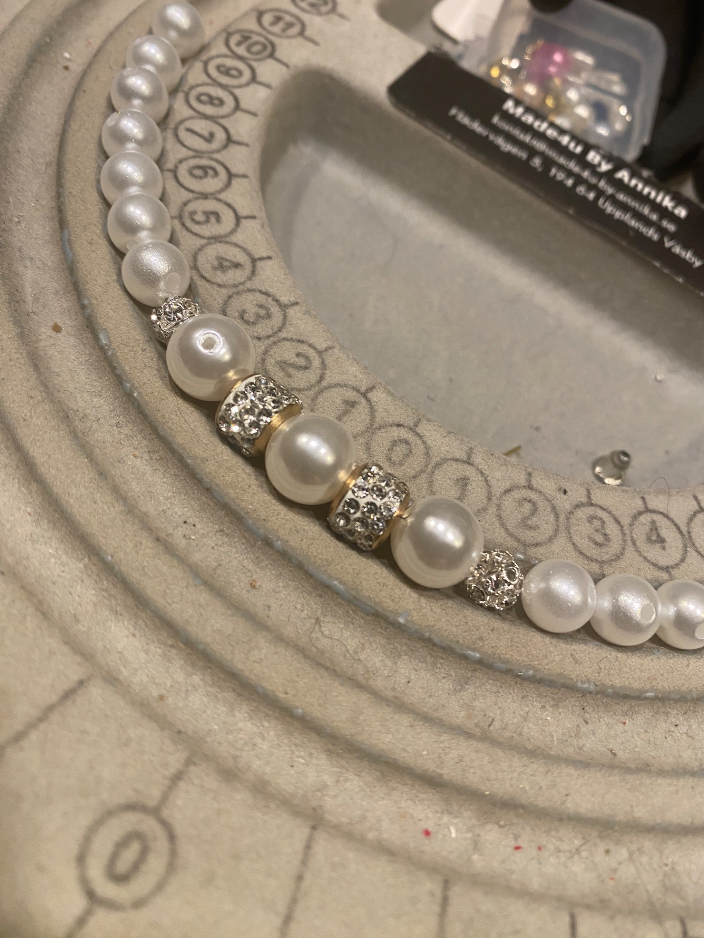 Modell Elegant är ett tidlöst armband med pärlor och detaljer. Grunden är klassisk, men färger och uttryck väljer du själv så att armbandet blir unikt för just dig.