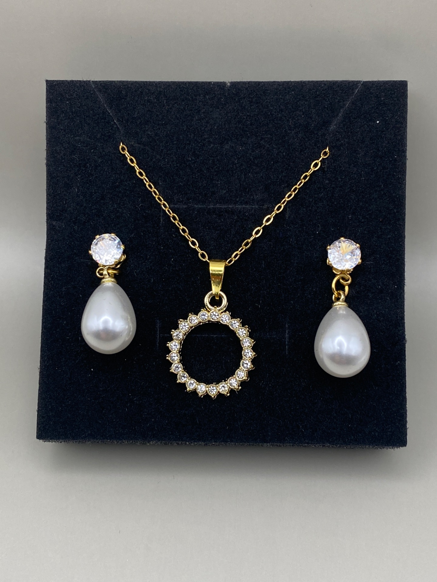Vackert set med ett par örhängen och ett halsband. (ord.pris 198kr)
