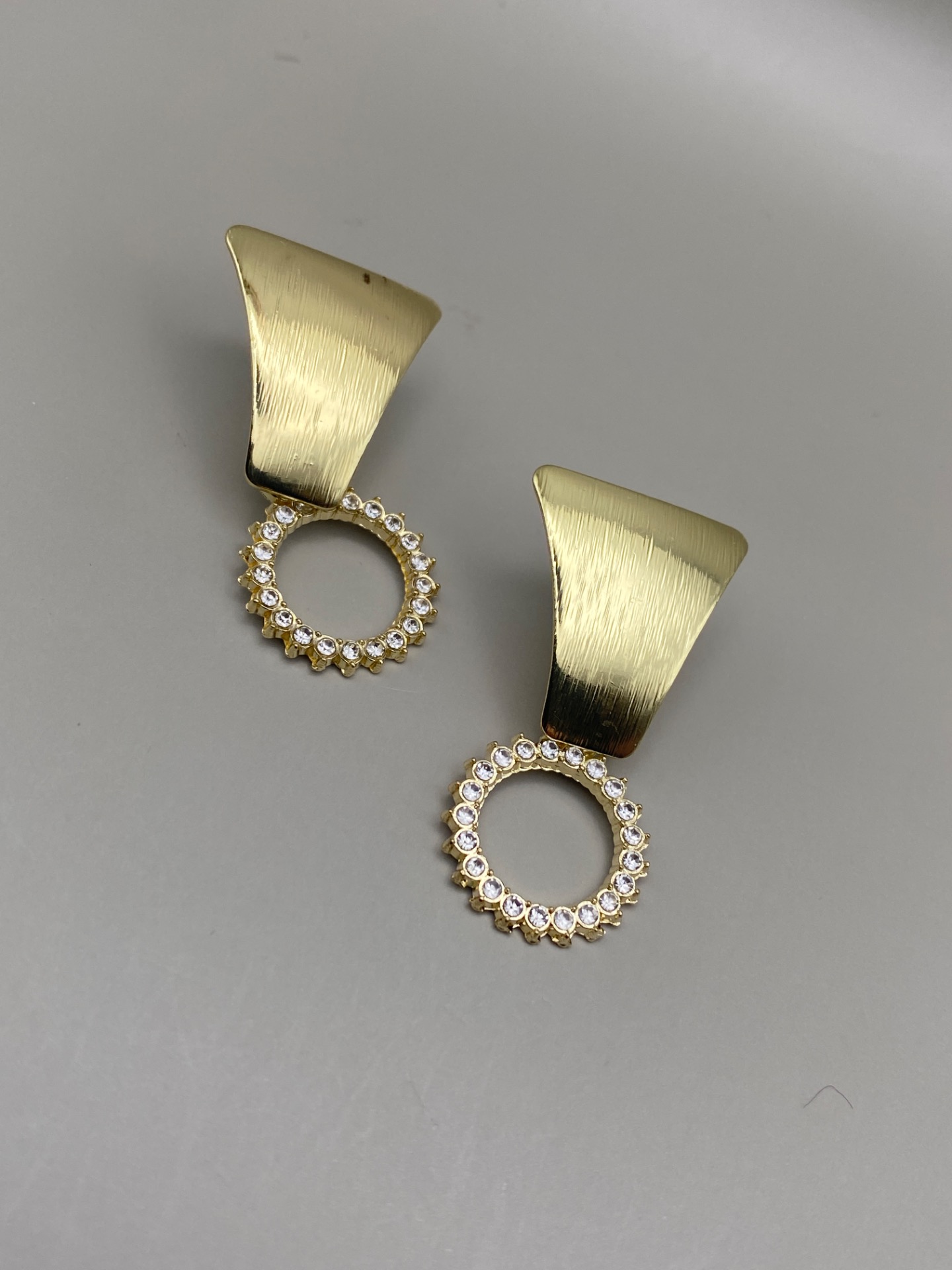 Festliga och dekorativa örhängen med stort guldfärgat stift och vacker hängande rund berlock med strass.