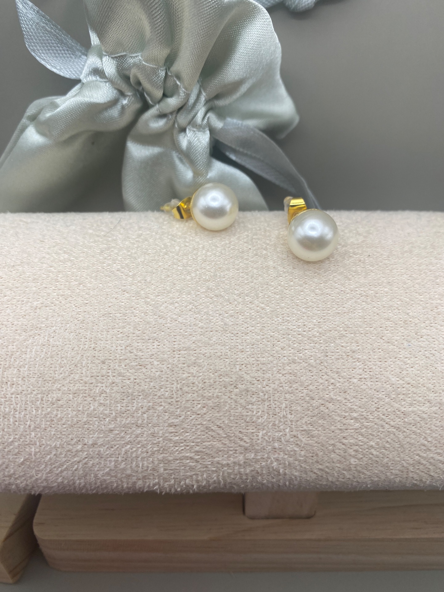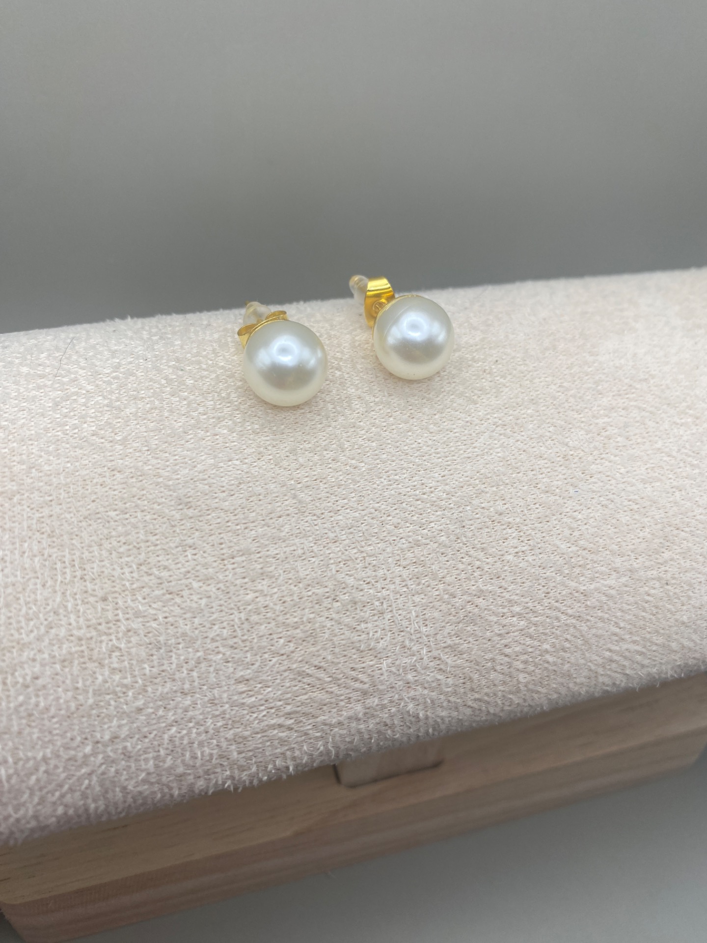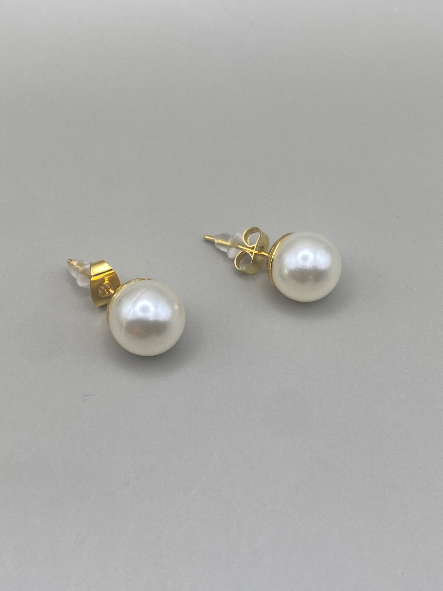 Vackra stilrena och klassiska örhängen med en högblank benvit pärla på guldfärgad grund.