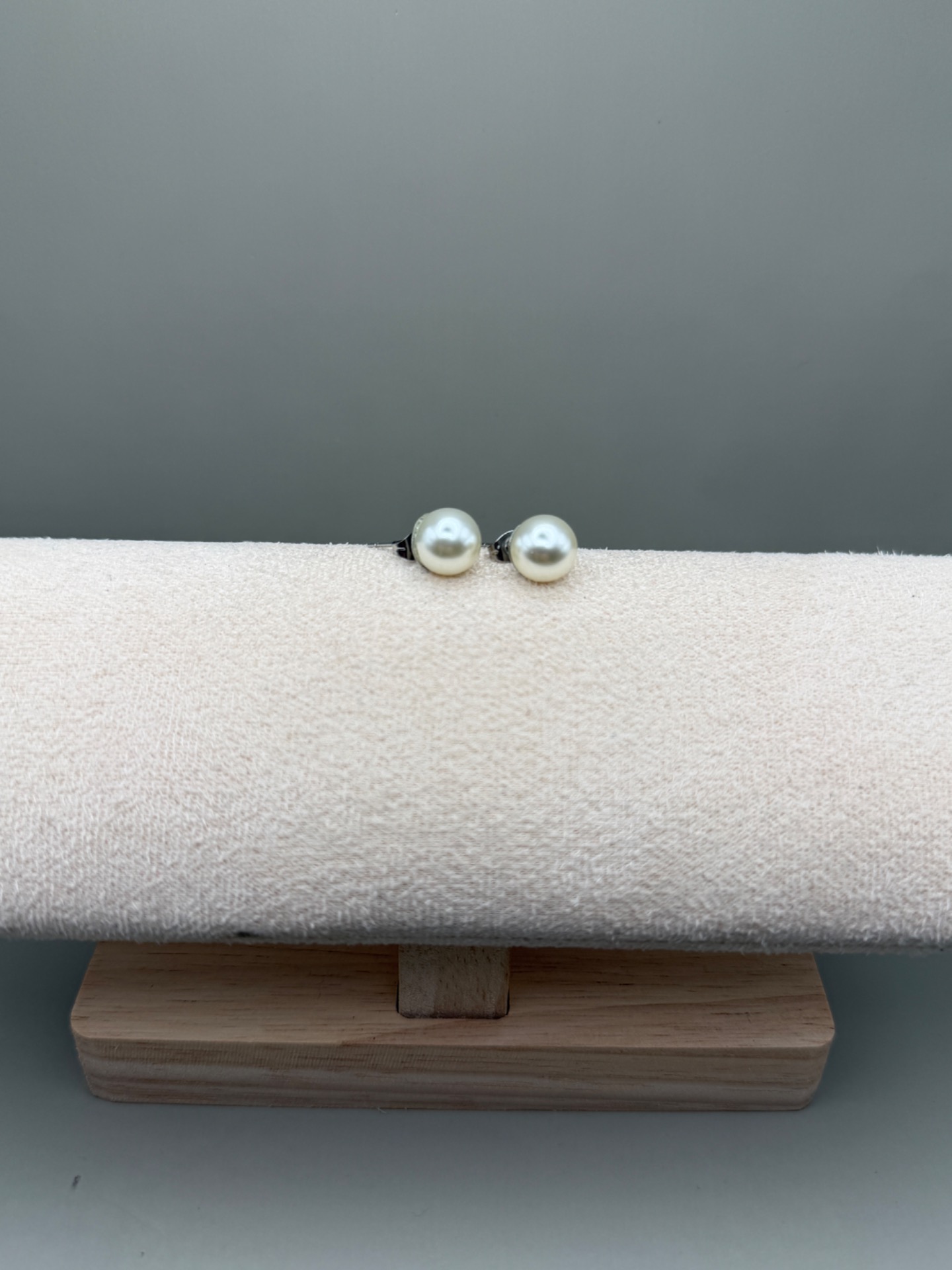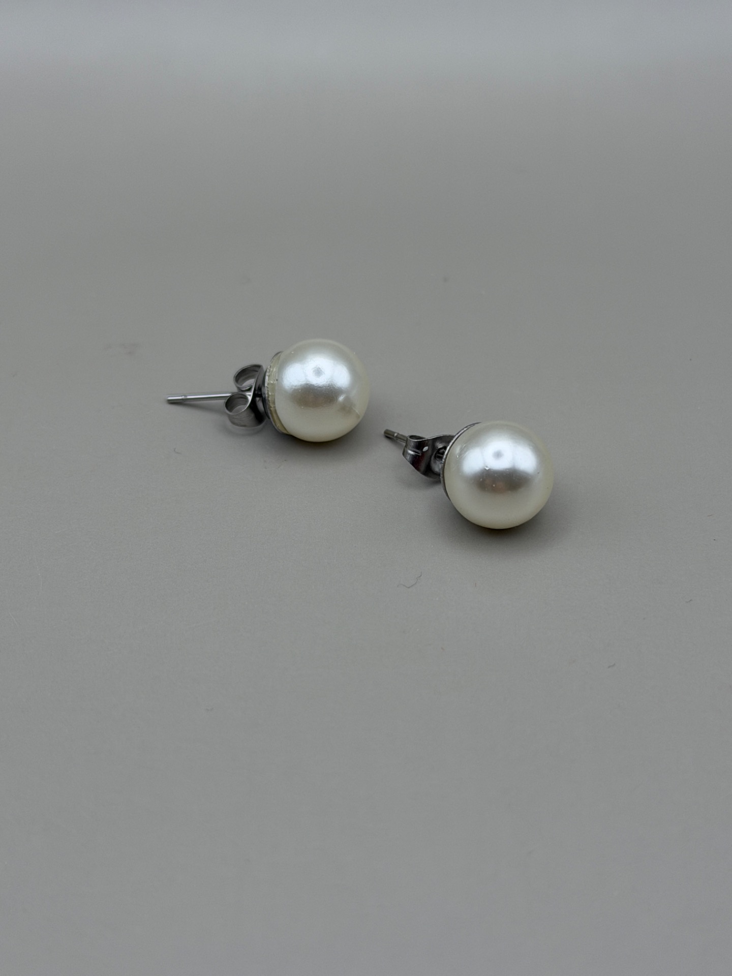 Vackra stilrena och klassiska örhängen med en högblank benvit pärla på silverfärgad grund.