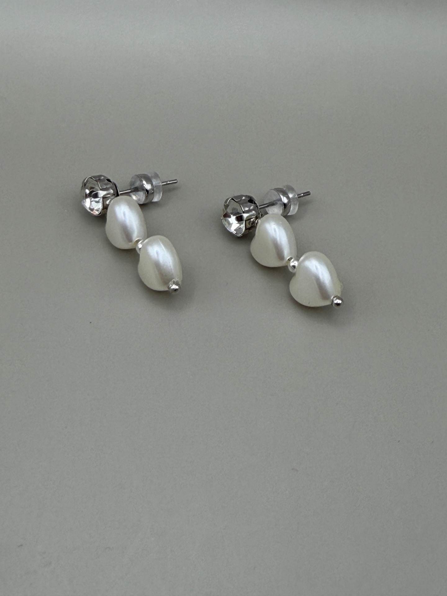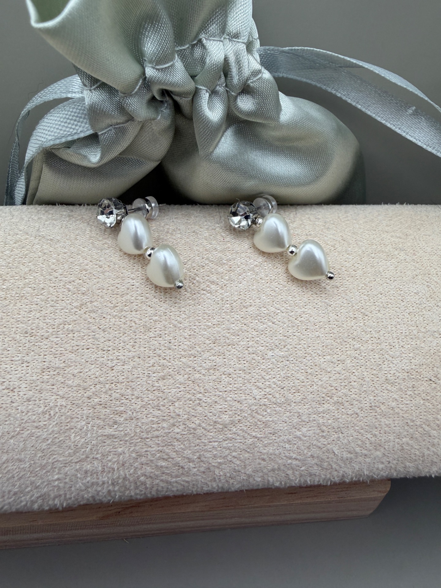 Söta och stilrena örhängen med vacker strass upptill och två små vita hjärtan nedtill