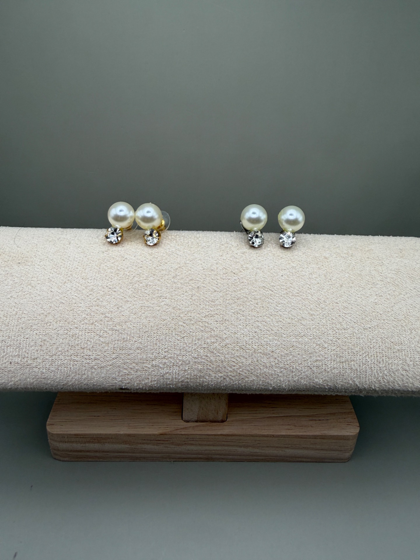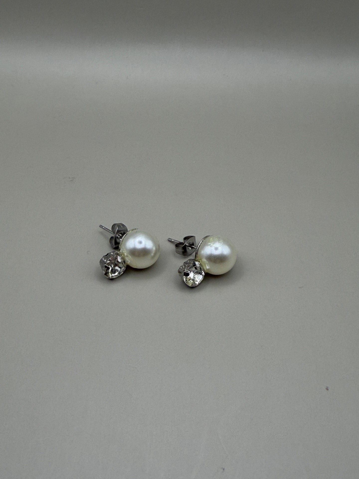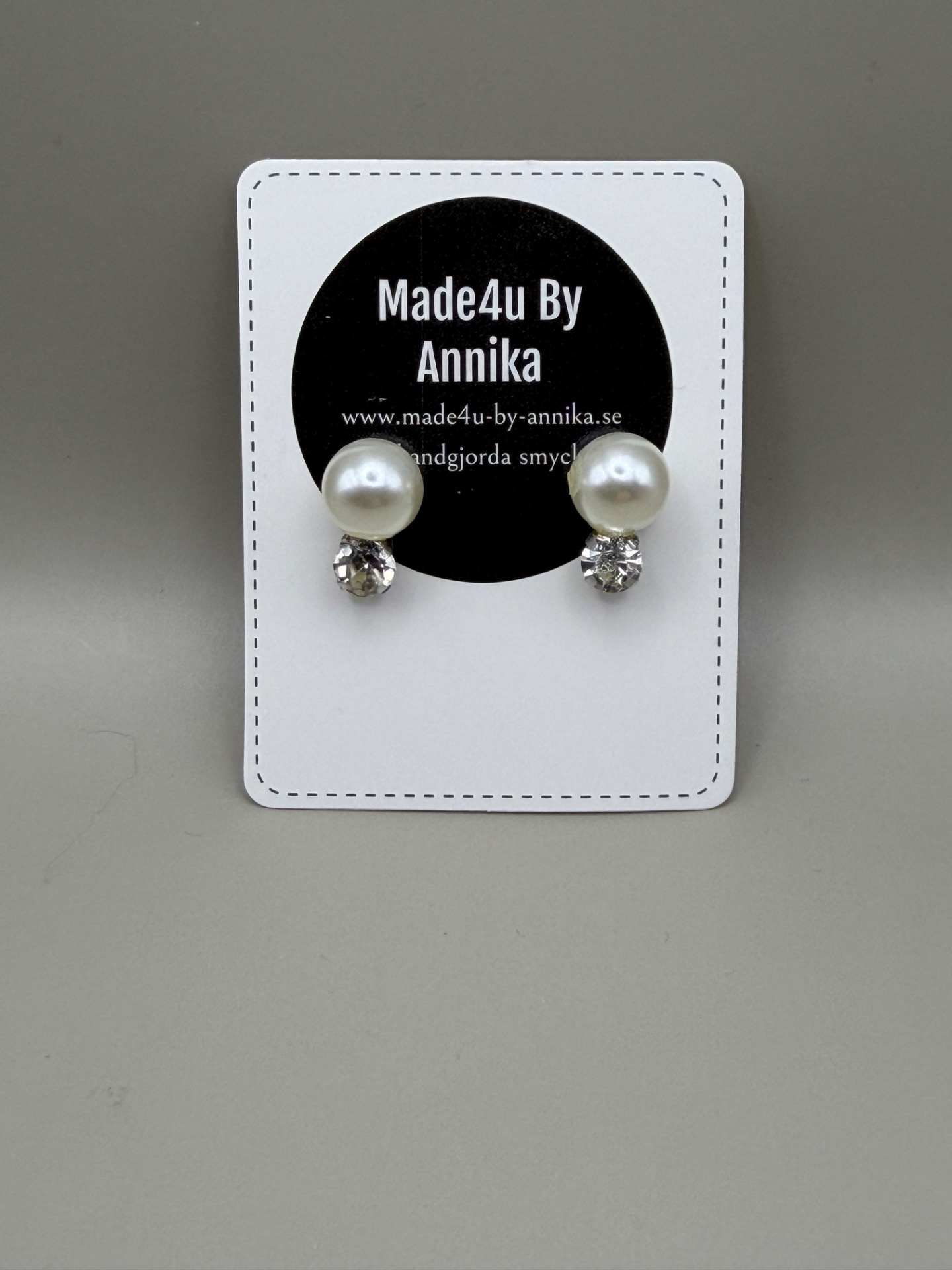Vackra och stilrena örhängen med benvit högblank pärla och en gnistrande cubic zirconia.